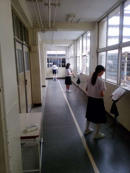 吹奏楽部は、各パートに分かれて、校舎のあちらこちらで練習をしています。