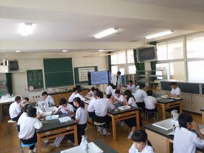 2年生の理科です。化学の実験をしています。