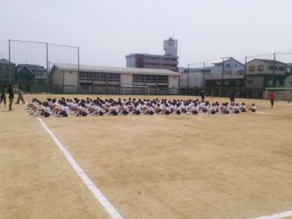 いよいよはじまりました1年生の学年練習。集合や移動、テキパキとした動きもまだまだわかりません。