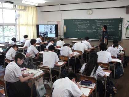 黒板と電子黒板をうまく組み合わせて、理解を深めています。