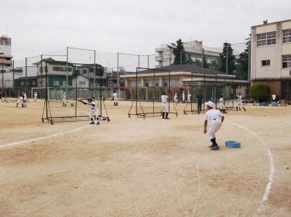 野球部はバッティングの練習をしています。基礎基本練習は反復練習が一番です。