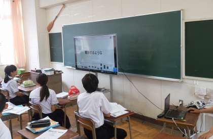 ICT機器を使うと、瞬時に出てくる単語や日本語を声に出せます。自分の机上のノートを見ないので、顎が上がって声が出ます。