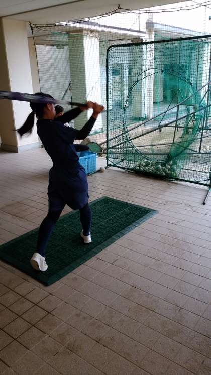 ソフトボール部はスペースを確保しバッティング練習をしています。