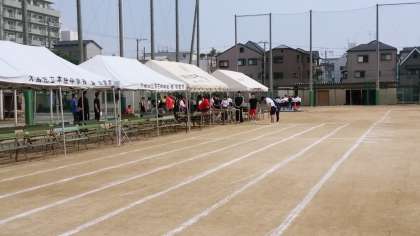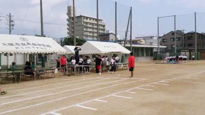 ほぼ準備が終わり、選手宣誓やラジオ体操の練習を始めています。