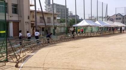 保護者席の椅子をひとつひとつ拭いて回ってくれています。