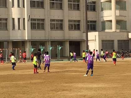 今日はサッカー部員は、東生野中学校で、東生野中学校と滋賀県の信楽中学校と練習試合をさせてもらっています。