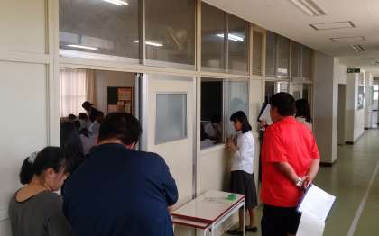 先生方が教室に集まっています。