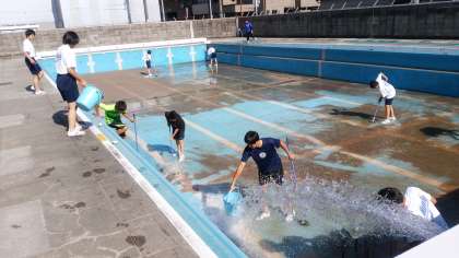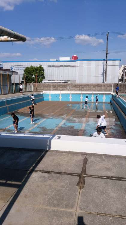 今月末から始まりますプールの授業に備えて、プール掃除をしています。