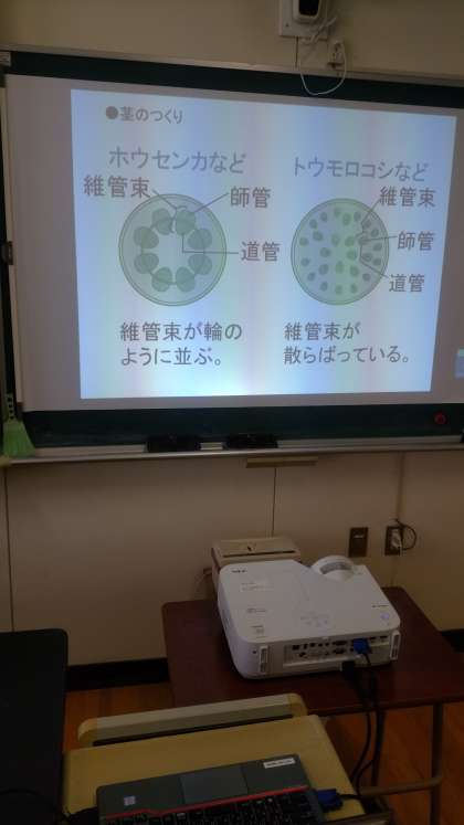 6月14日(水)11:00 1年生の理科でも実験をしています。 双眼実体顕微鏡などで茎を見ます。スケッチでうまく記録を残します。