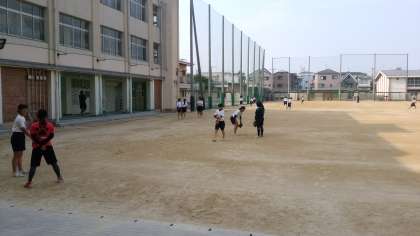 この時間はすでに何人もの生徒が来ています。朝練をしているソフトボール部。早朝より本当によく頑張っています。