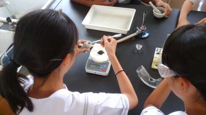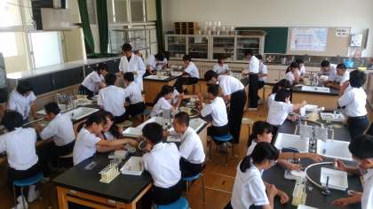 生徒はその色の変化、煙やにおい、磁石をあてるなどで、その反応を知っていきます。