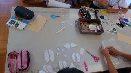 家庭科ではフェルトで被服実習をしています。