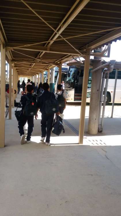 バスに乗り込みます。