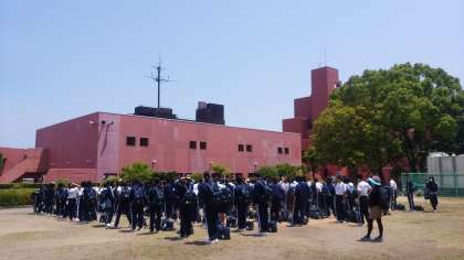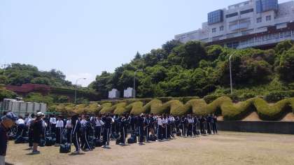 海洋センターのグラウンドに集まりました。これから様々なメニューが始まります。