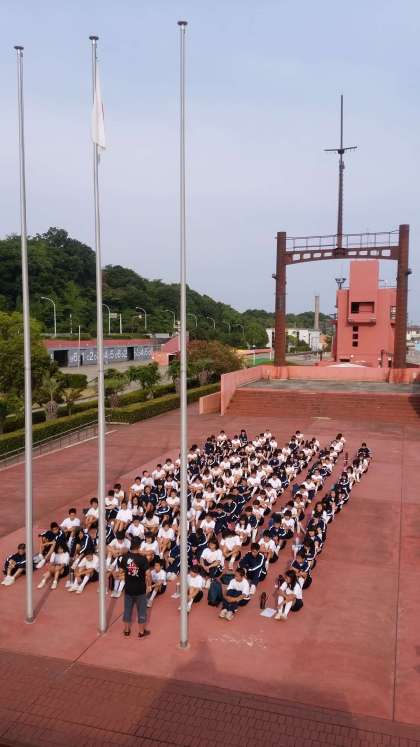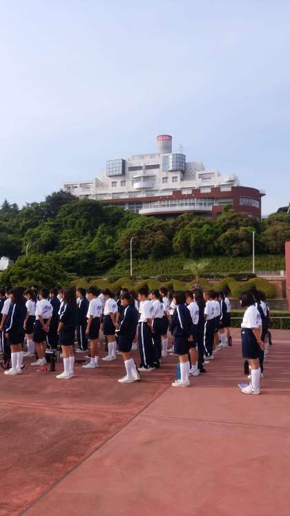 体操が終わり、今日の諸注意を受けています。