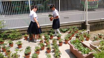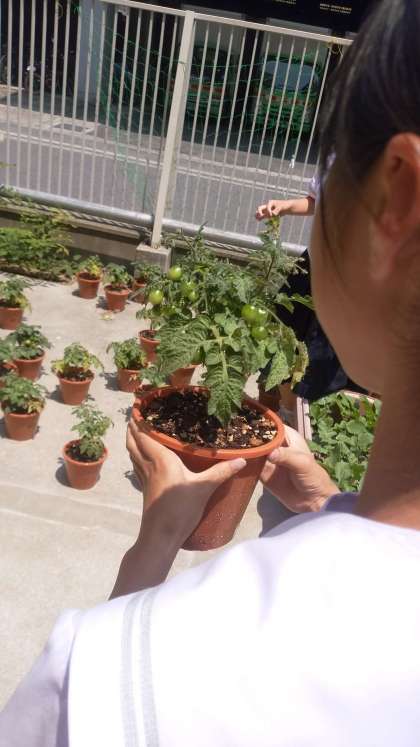 2年生の栽培しているトマト。大きく育ってきました。もう少しで赤くなってきてくれますかね。