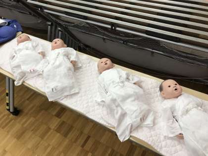 2年生は、バルナバ病院で、妊婦体験や新生児人形を抱くなどの体験が始まっています。