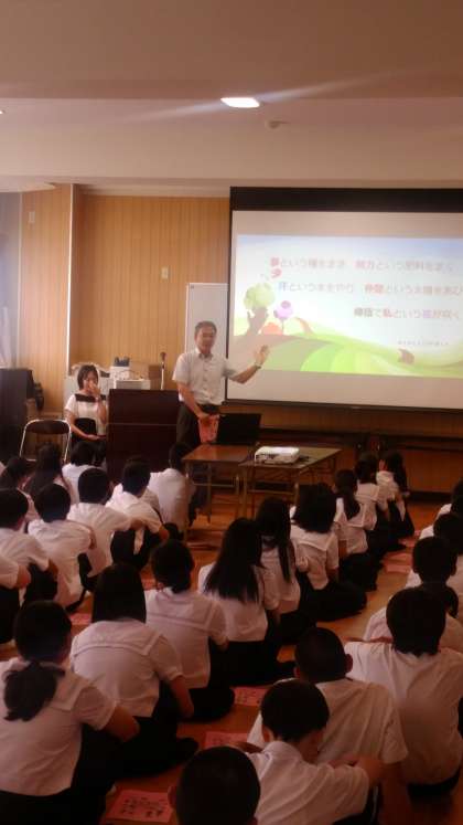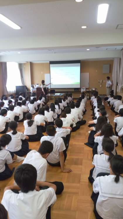 具体的に高校の先生に来ていただき、学校の説明や、高校ってどういうことをするのか、英語ってなぜ勉強しなければいけないのかのどの話を聞きました。