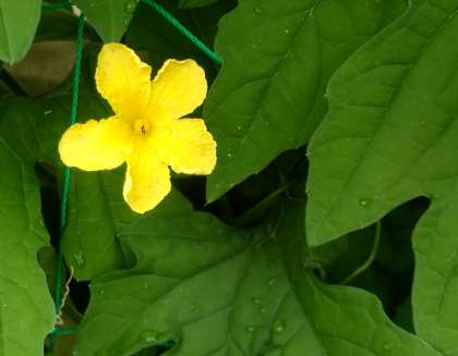 壁面緑化を推進していますが、管理作業員さんのご努力で、随分大きく育ってきて、花も付けました。
