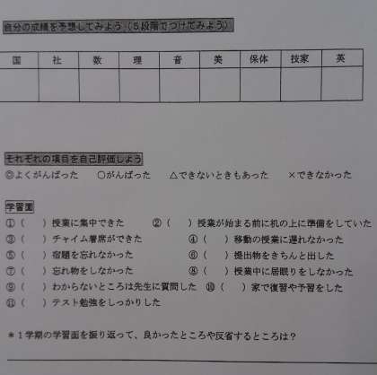 6時間目は特別活動の時間です。各学年とも様々な活動をしていますが、3年生は1学期を振り返って自己分析をしています。