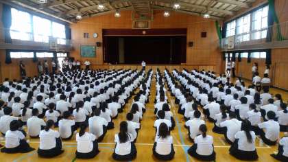 本日この時間行われています、平成29年度、大阪市立本庄中学校、第一学期終業式です。