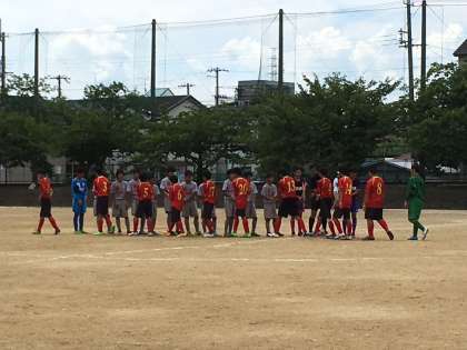 全くゴール無く一進一退の展開。このままPK戦へとなるかと思っていたら、試合終了5分前に得点し、1−0で勝利しました。応援に来て頂いた保護者の皆様、暑い中、本当にありがとうございました。