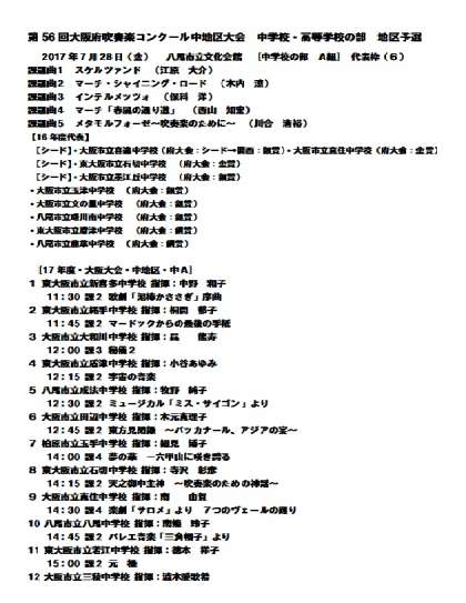本日行われます、第56回大阪府吹奏楽コンクール中地区大会 中学校・高等学校の部予選は、八尾市文化会館「プリズムホール」にて開催されます。