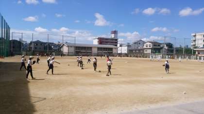 ソフトボール部はスライディングの練習の後、ボールを使います。