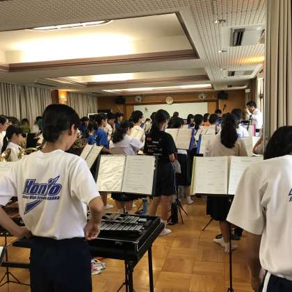 各校2年生の人数が多く、立ったままの演奏で練習しています。