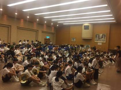 吹奏楽部は明日のたそがれコンサート前日の最終確認の様子です。
