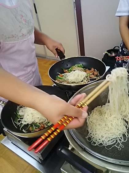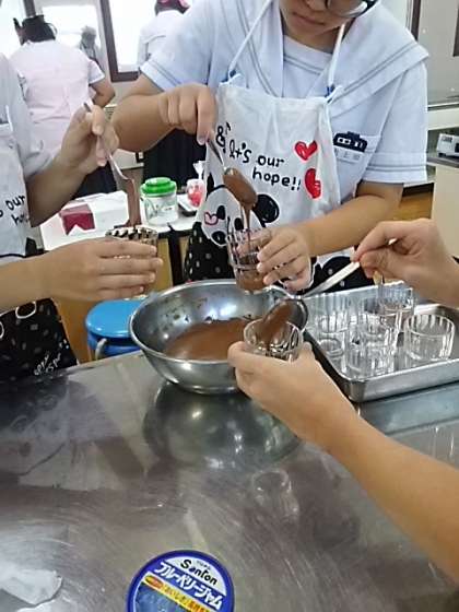 家庭科クラブで調理実習をおこないました。メニューはそうめんチャンプルー、ビシソワーズと、7月24日、料理教室で教わったチョコレートムースのヴェリーヌです。