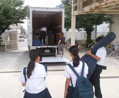 本日、大阪工業大学の、OITホールをお借りして行われる、5B演奏会に向けて、楽器の積み込みをしています。