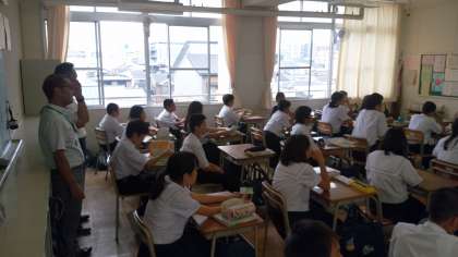現在の1年生が昨年度、6年生だったころの、今里小学校の教頭先生と担任の先生に来ていただいています。