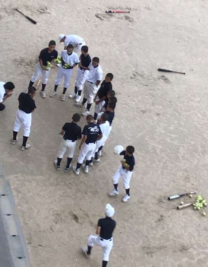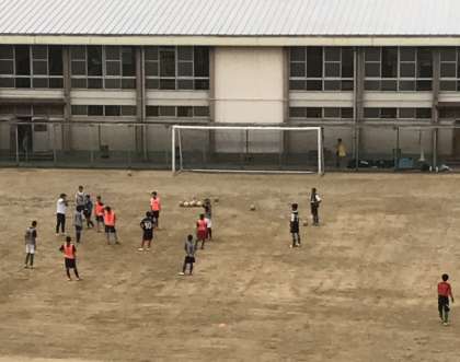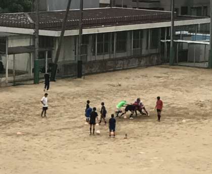 昼下がりの大雨が、沢山の水溜りを作ってしまっていますが、部活動は当然のように行われています。