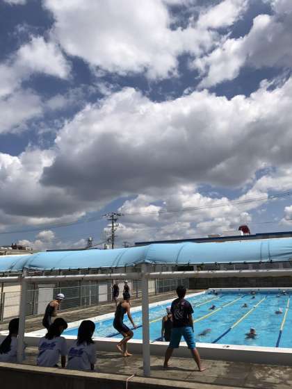 少し寒いと言いながらではありますが、雨上りの青空の下で気持ちよさそうな水泳授業です。