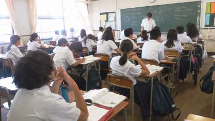 周波数とは何か、50Hz、60Hzとはどういう意味かなど、ちょっとむつかしいお話ですが、生徒は熱心に聞き入っています。