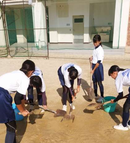 ソフトボール部 公開日 2017/09/08 更新日 2017/09/08 校内の様子 9月8日(金)放課後3:10 グラウンド整備をするソフトボール部です。 まずは水溜りの水を取っています。 いいね(0)