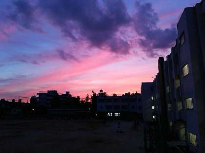 東館からグラウンドの方向を見ると、夕陽がもうすっかり秋めいていることに気づいてくれた生徒がいました。