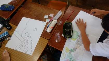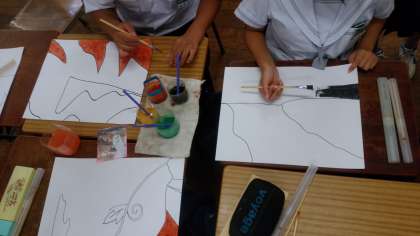 総合の時間を使って、各クラステーマごとの絵を描いています。