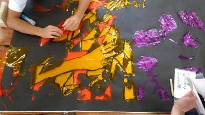 随分完成に近づいてきました。玄関に掛けるとどんな風になるのかが楽しみです。