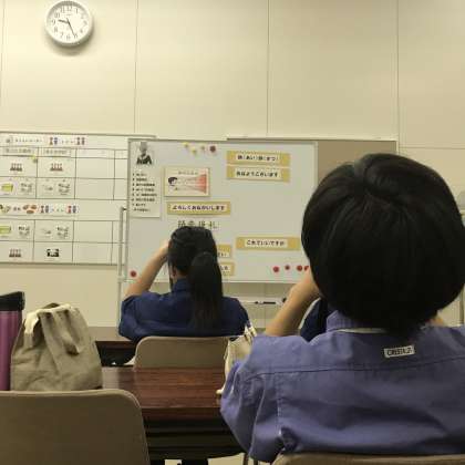 朝礼で各自の目標の発表、語先後礼〔ごせんごれい〕の実践、友だち同士であっても苗字にさん付けで呼び合うこと、仲間同士のコミュニケーションの重要性など、指導員の先生方からいろいろと教えていただいています。