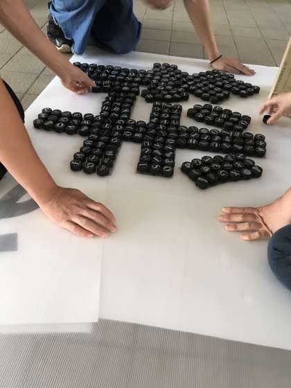 先ほどの掲載に続いて、生徒会活動はキャップアートに進んでいます。