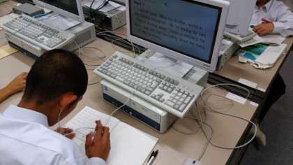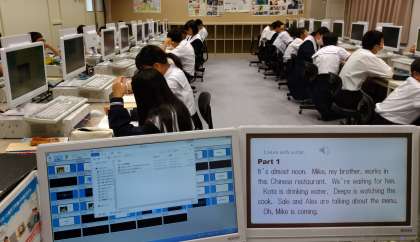 イヤホーンを持参し、各コンピュータからの音声を聞きます。