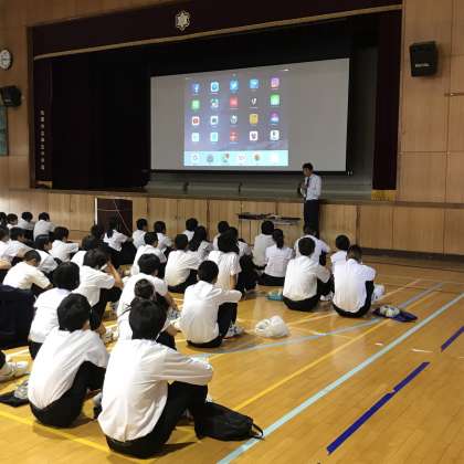 本日、PTA会員様のご協力をいただき、ネットワーク教室の講習会を行っています。フェイスブックやインスタ、ラインやツイッターなど聞きなれない言葉が飛び交っていますが、中学生の皆さんはよくわかっているようでした。
