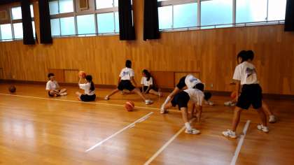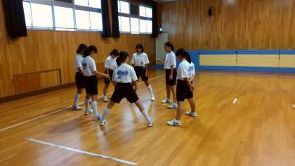 女子体育では柔軟性の向上目指した授業を展開しています。