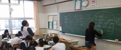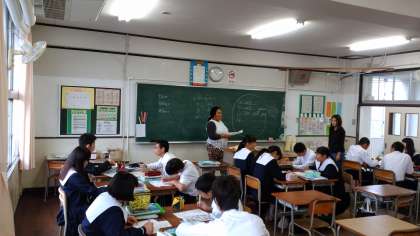 英語の授業では、ちょうど半分に割って、授業展開しています。