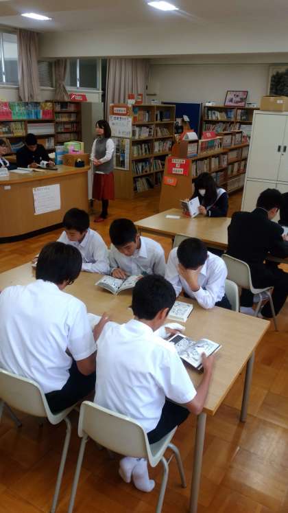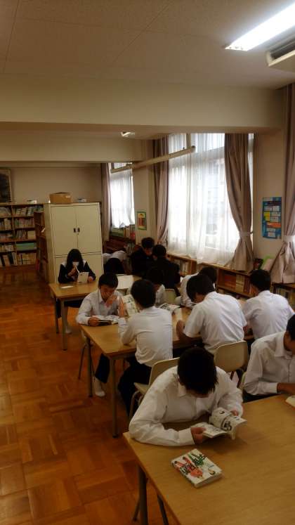 秋の長雨でグラウンドでは遊べない生徒たちは、教室や図書館で思い思いの時間を過ごしています。