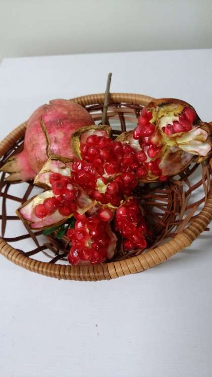 校長室前に、近隣小学校から頂いたザクロを置きました。