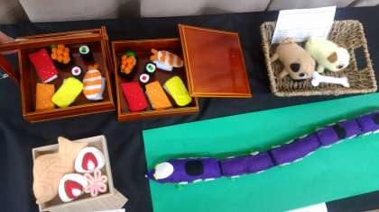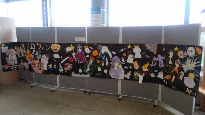 総合文化祭、咲くやこの花館での美術と家庭の出品作品です。