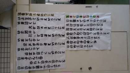 玄関には3年生の作品が展示されています。